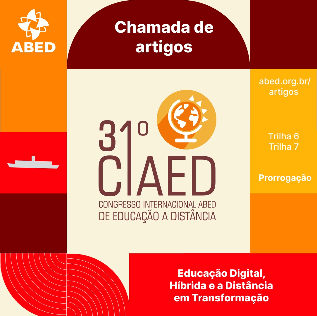 A Associação Brasileira de Educação a Distância (ABED) convida pesquisadores, gestores, profissionais e estudantes a submeterem trabalhos para o 31º Congresso Internacional ABED de Educação a Distância (CIAED). O evento será realizado de 27 a 30 de abril de 2026, na cidade de João Pessoa – PB, Brasil.