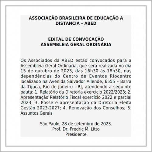 Edital de Convocação - Assembléia Geral Ordinária ABED 2023