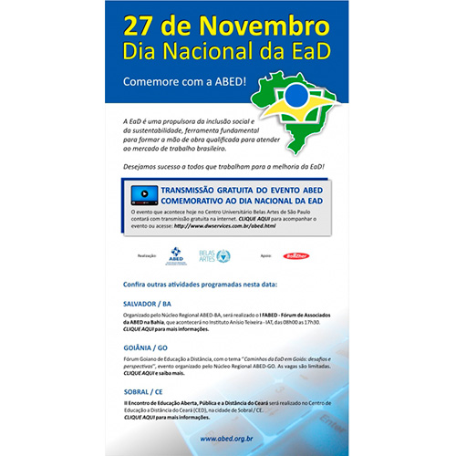 27 de Novembro - Dia Nacional da EaD - Transmissão ao vivo do evento comemorativo ABED