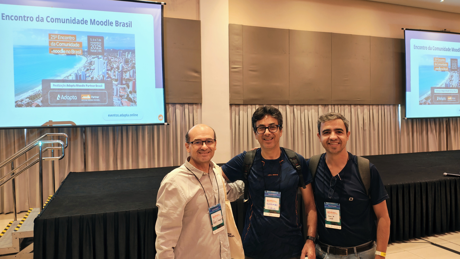 A Associação Brasileira de Educação a Distância (ABED) marcou presença no 25º Encontro da Comunidade Moodle Brasil (ECM), em Natal, um dos principais eventos do país para entusiastas da educação online. Representada pelos seus diretores, os professores Alex Sandro e Luiz Biagiotti, a ABED integrou os debates que discutiram o futuro da aprendizagem digital, com foco em temas como inteligência artificial, acessibilidade, gamificação, neurociência e dados educacionais.