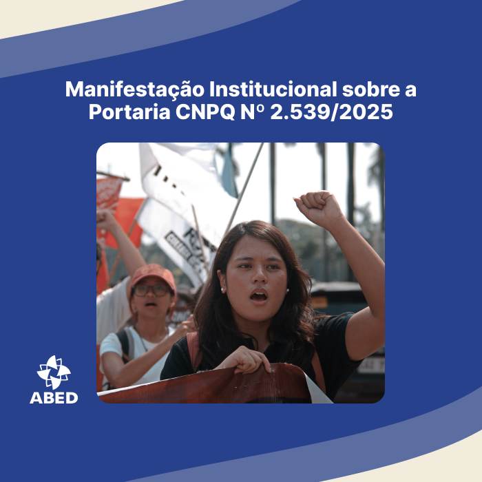 A Associação Brasileira de Educação a Distância (ABED), entidade científica sem fins lucrativos dedicada há mais de três décadas à promoção da pesquisa, do debate e da inovação em educação a distância, ao combate ao preconceito contra a modalidade e ao fortalecimento da oferta de EaD de qualidade em todos os níveis, vem, por meio desta manifestação formal, solicitar a revisão do Artigo 10 da Portaria CNPq nº 2.539, de 17 de novembro de 2025, que estabelece: